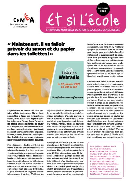 La pandémie de COVID-19 a eu certains effets inattendus. Elle a forcéà remettre le focus sur le lavage des mains, mais aussi sur l’hygiène dans les toilettes à l’école. Dans l’urgence,les écoles ont été sommées de revoir et d’adapter leur fonctionnement dans ces lieux souvent vétustes : gestion de l’accès et approvisionnement en papier, essuies, savons. Pourtant, cette question des WC n’est pas neuve et dépasse