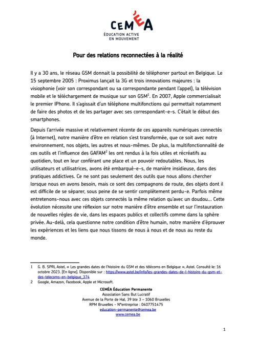 Les évolutions récentes et rapides des technologies numériques et la place qu’elles occupent dans nos vies, de même que l’influence qu’elles exercent, imposent que nous nous en saisissions sur le plan éducatif, sans complaisance ni aveuglement, mais critiques vis-à-vis de leurs dérives, curieux-ses des possibilités qu’elles offrent et préoccupé-e-s par les choix à faire pour que ces outils demeurent à notre service.