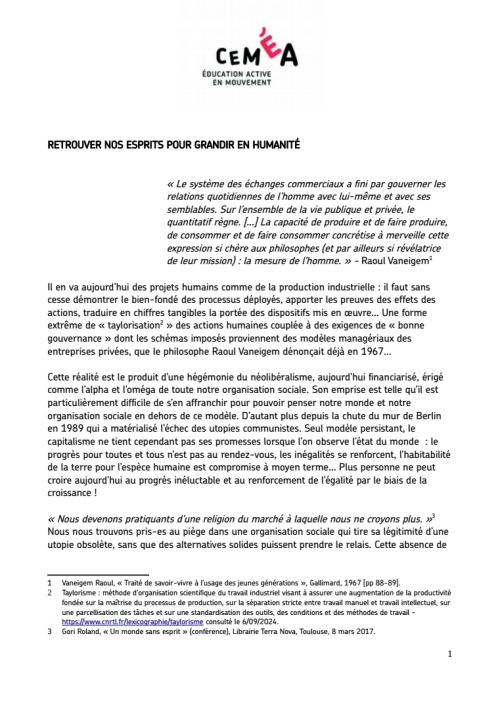 Pour nous citer : CEMÉA Belgique « Retrouver nos esprits pour grandir en humanité » - CEMÉACTION « Courir le risque », 2025.